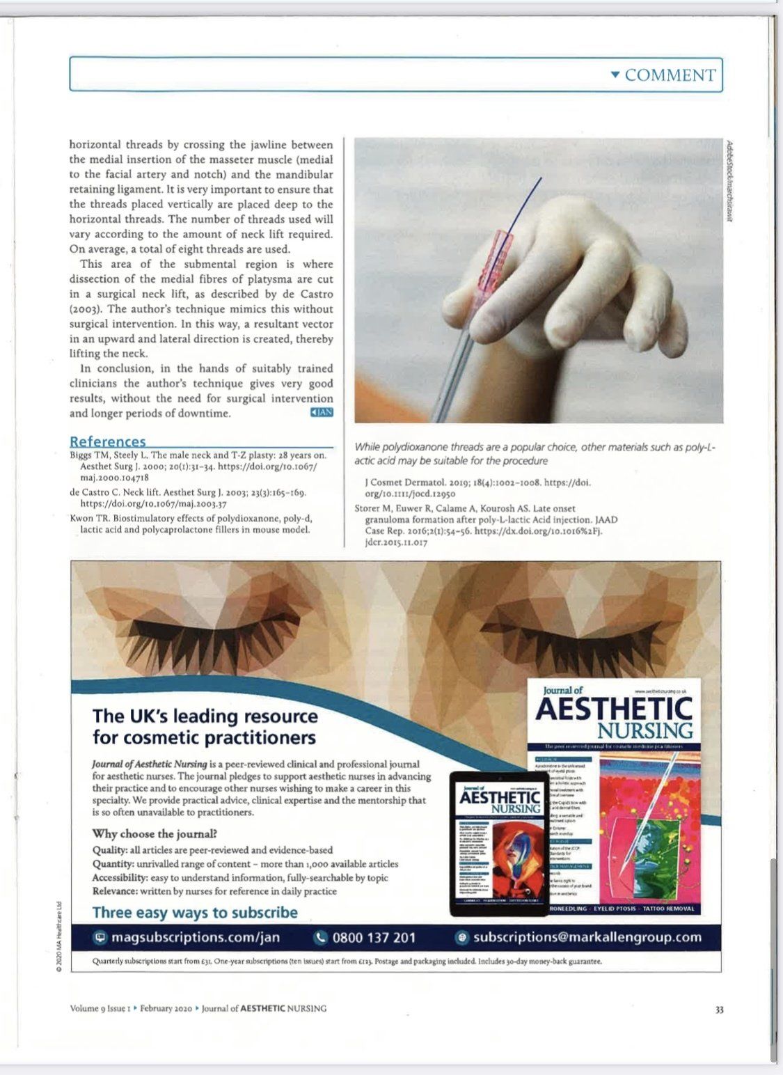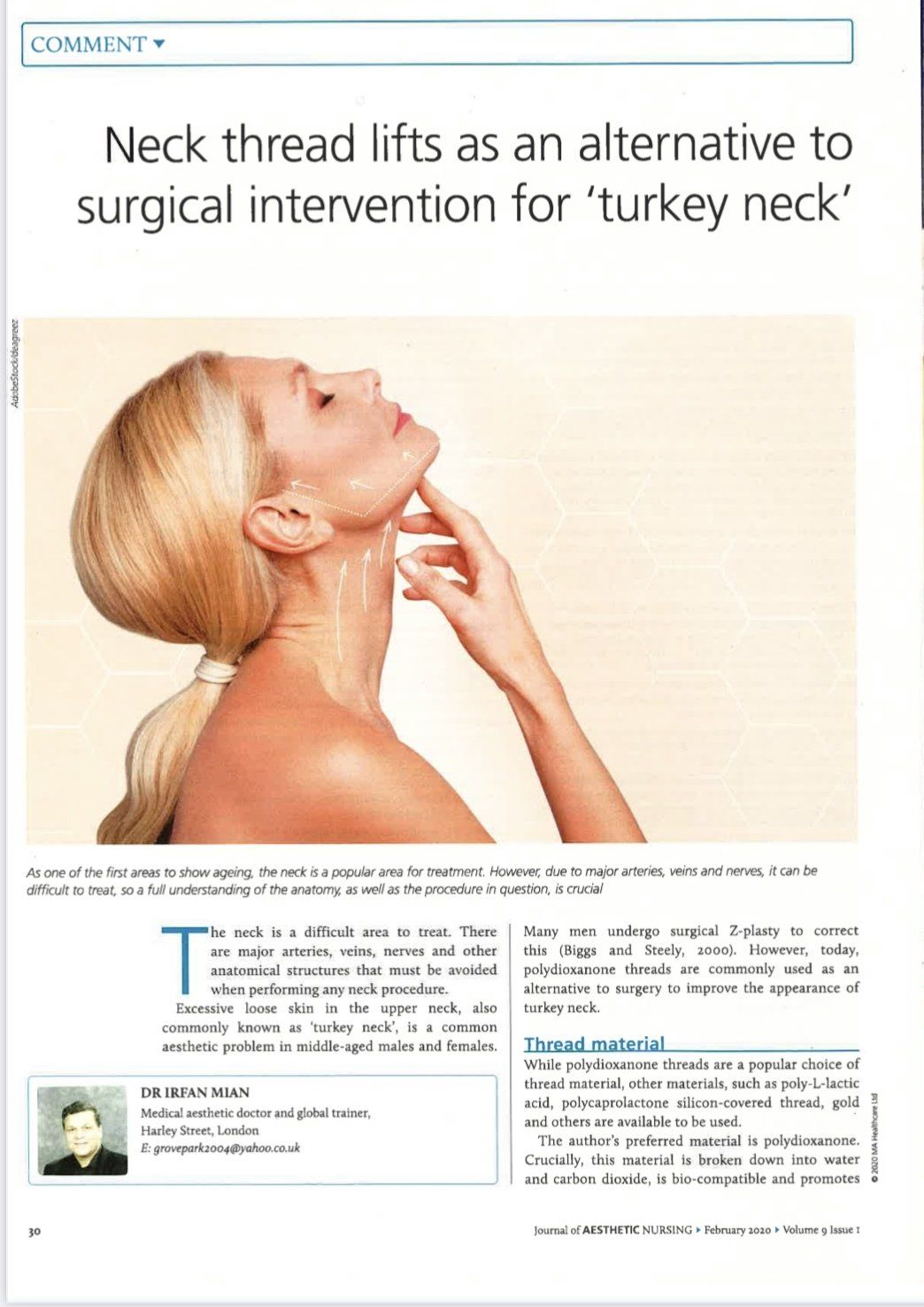 The Journal of Aesthetic Nursing February 2023, Dr Irfan Mian's pioneering work on non-surgical thread-lifts is published and peer-reviewed.