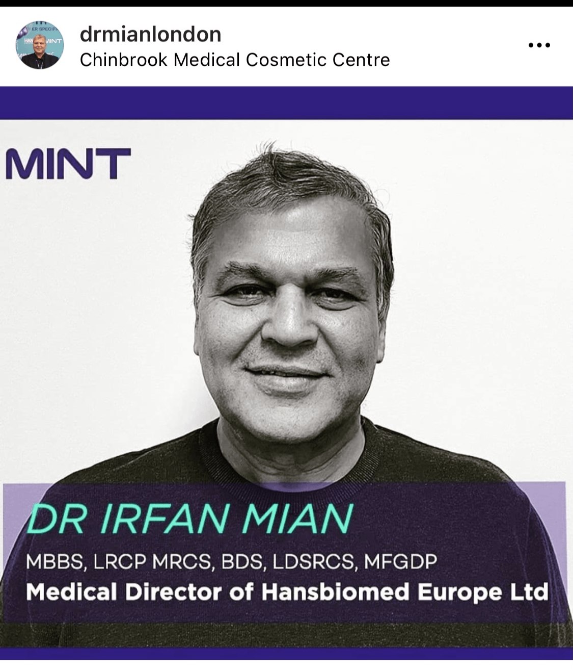 Dr Mian MBBS (LOND) BDS (LOND) LRCPMRCS (ENG) LDSRCS (ENG) MFGDP (UK) is a medical aesthetics practitioner, member of the General Medical Council and British Medical Association and dental practitioner.