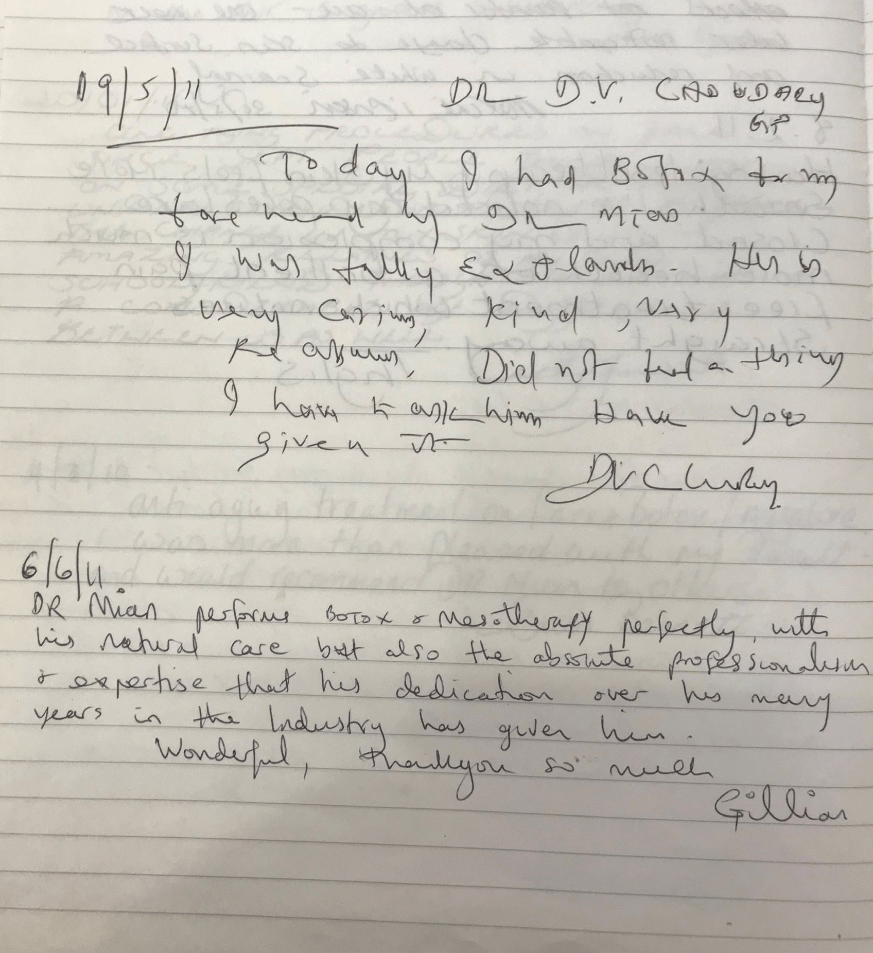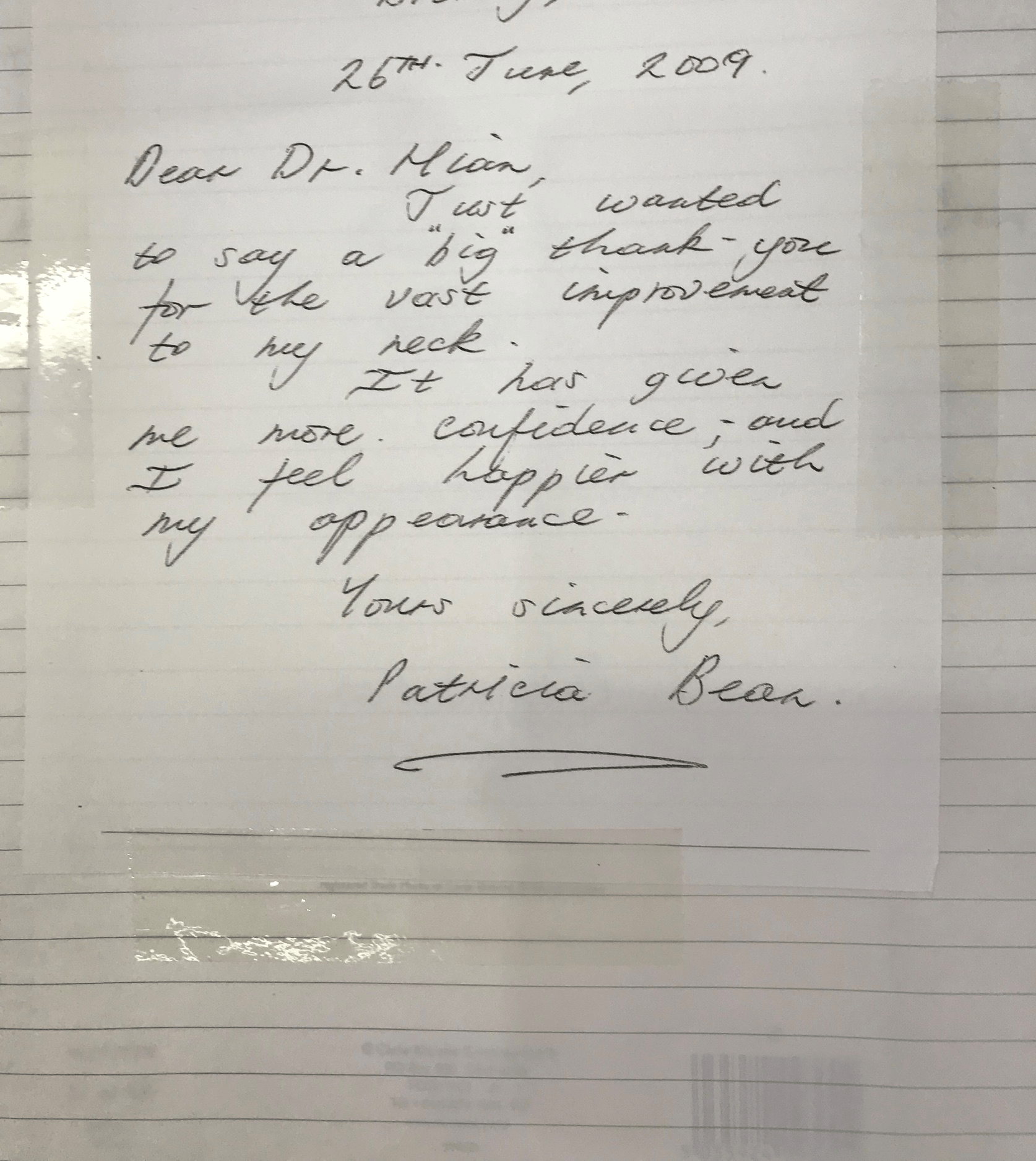 Dr Mian and the team at Chinbrook Medical Cosmetic Centre are delighted to share the wonderful Red Book of Patient Testimonials which is available in the waiting room for new patients to read. The hand-written notes are by patients, dating back to the 1990's through to the present year 2019.