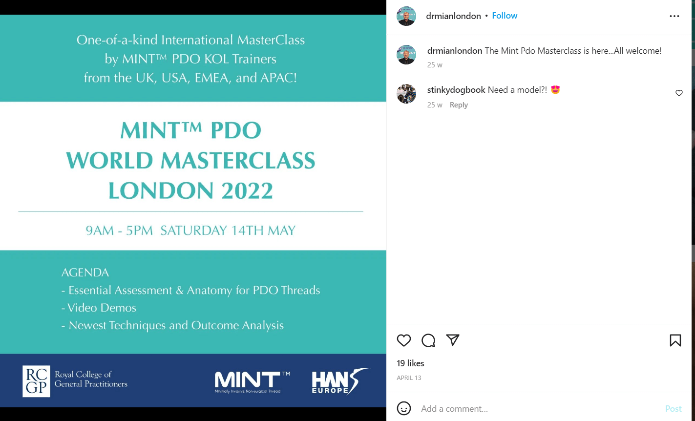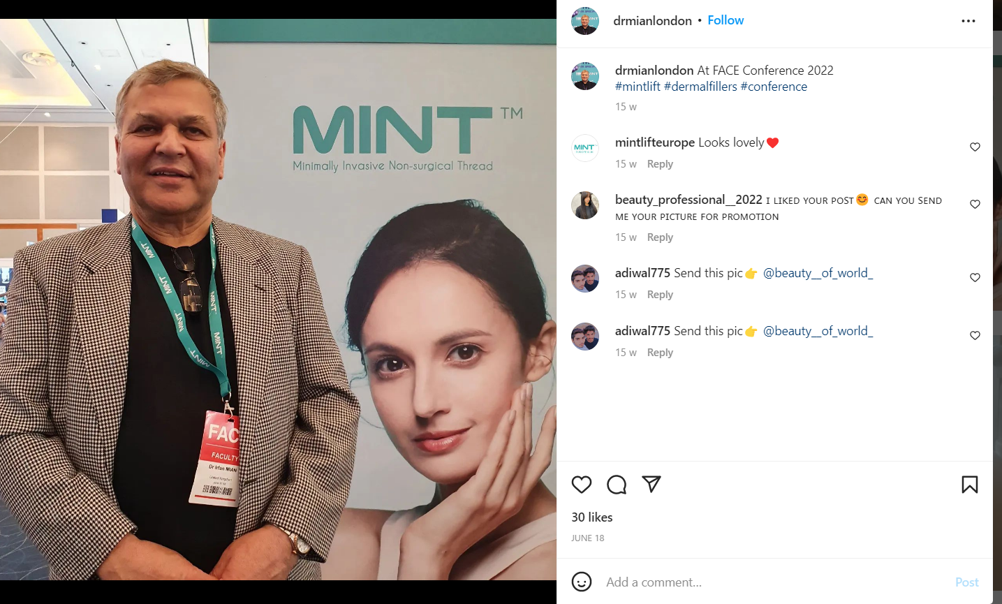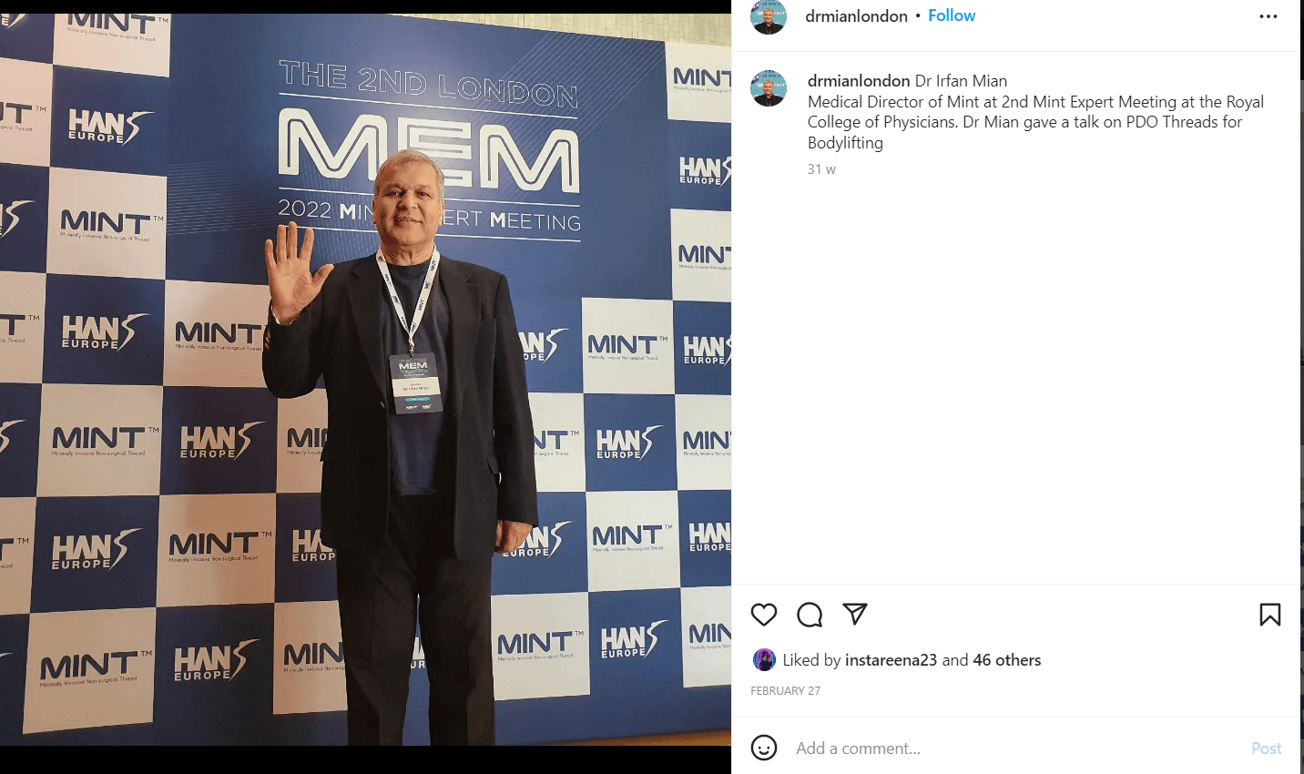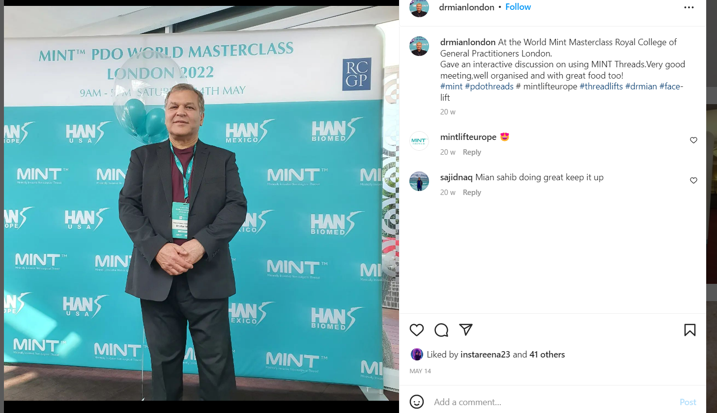 Dr Mian is the Lead European and Global Thread-lift Trainer and KOL for HansBiomed Corporation. He has presented papers, and as guest-speaker has performed live demonstrations in various UK and International Conferences.