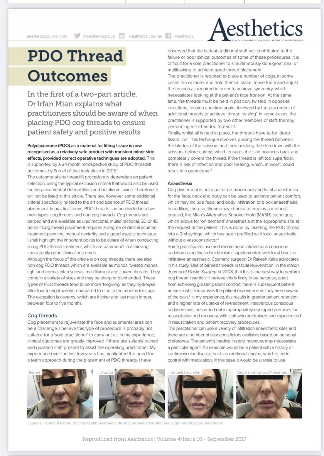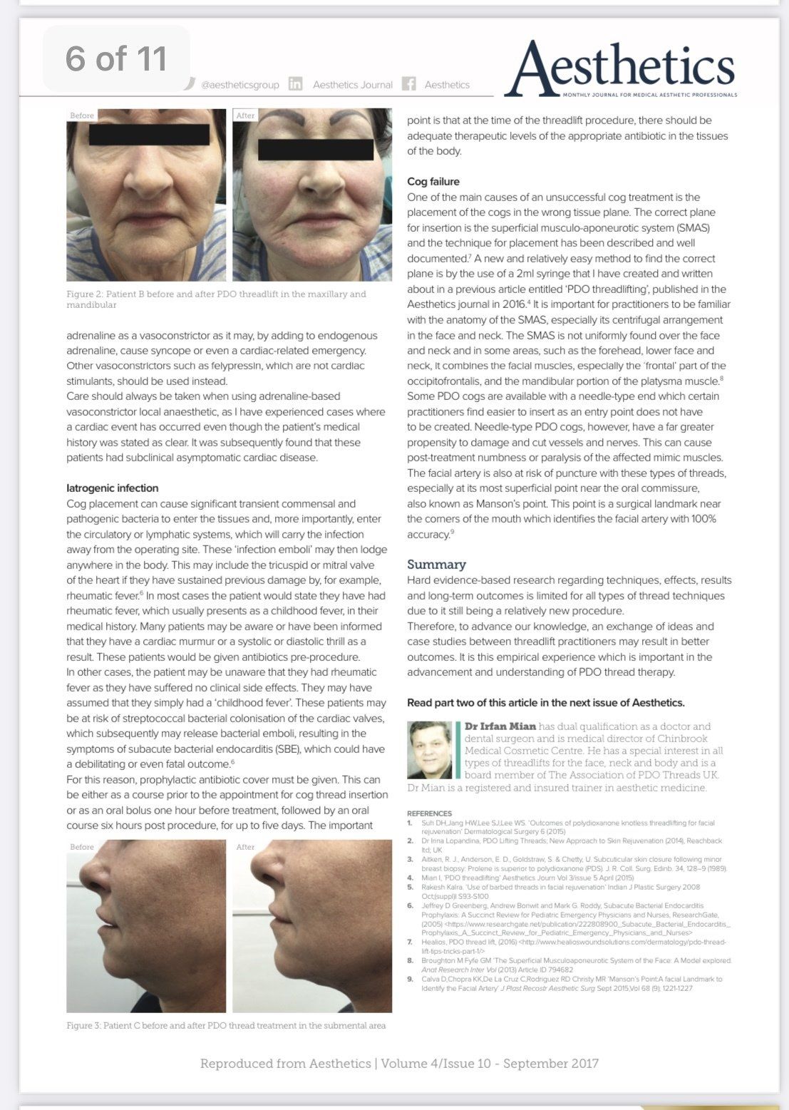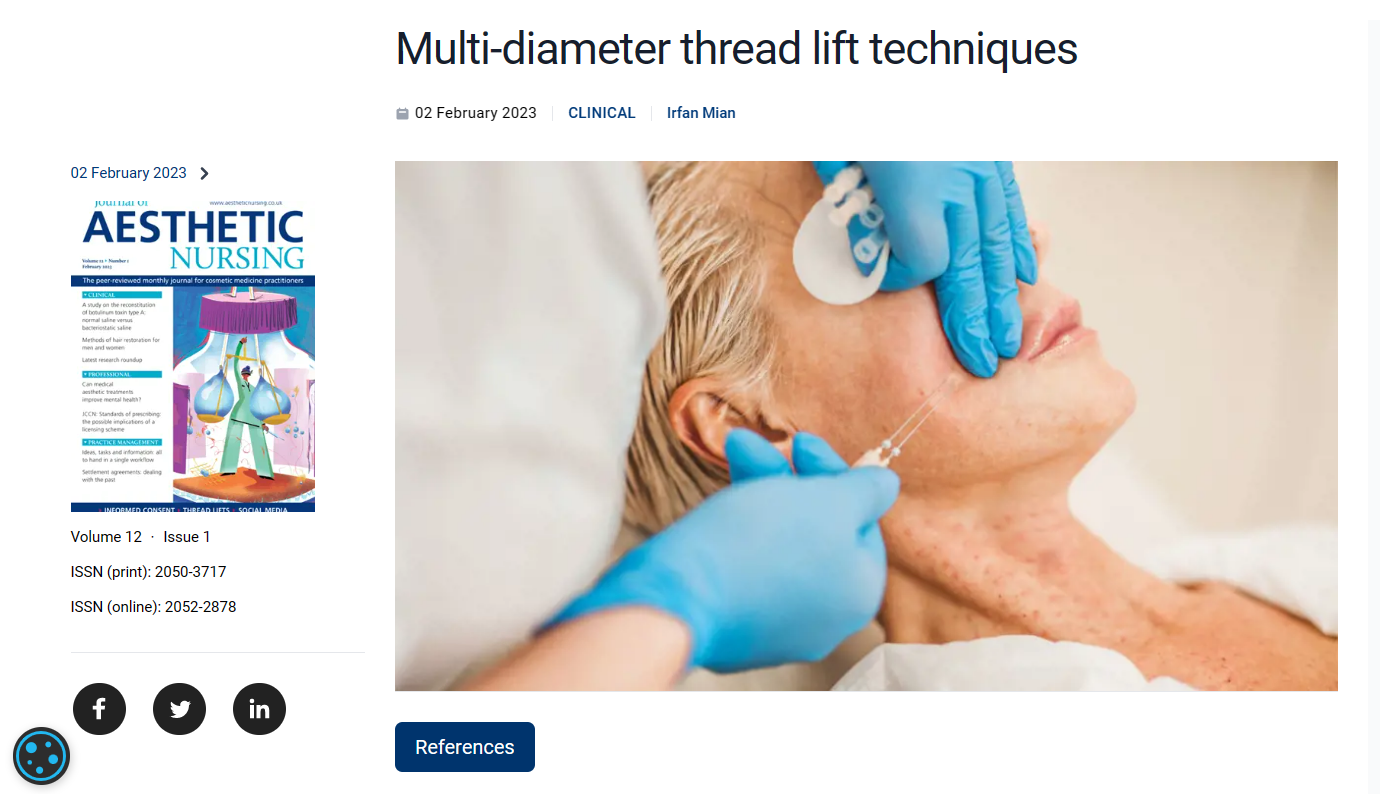 The Journal of Aesthetic Nursing February 2023, Dr Irfan Mian's pioneering work on non-surgical thread-lifts is published and peer-reviewed.